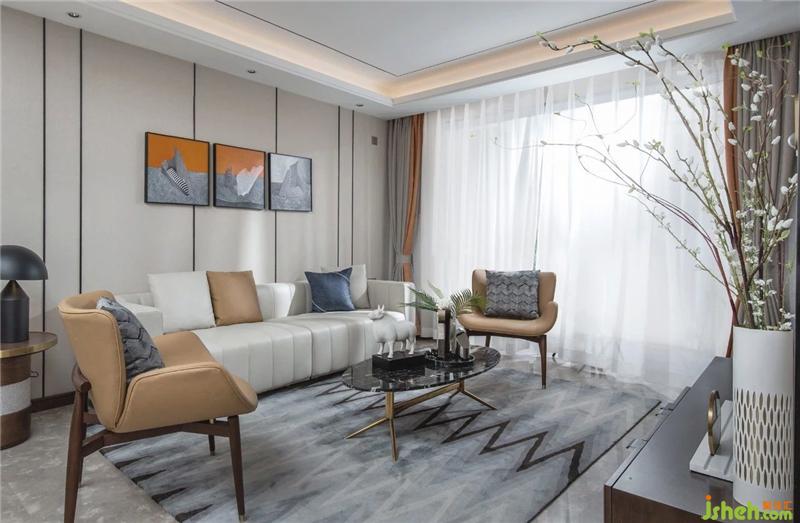 作为家中的公共活动和休闲空间,客厅的装饰多了一些轻松的元素,沙发和电视比较固定,但是素色的地毯、意向装饰画、茶几的摆件,都是美化空间的好物件。