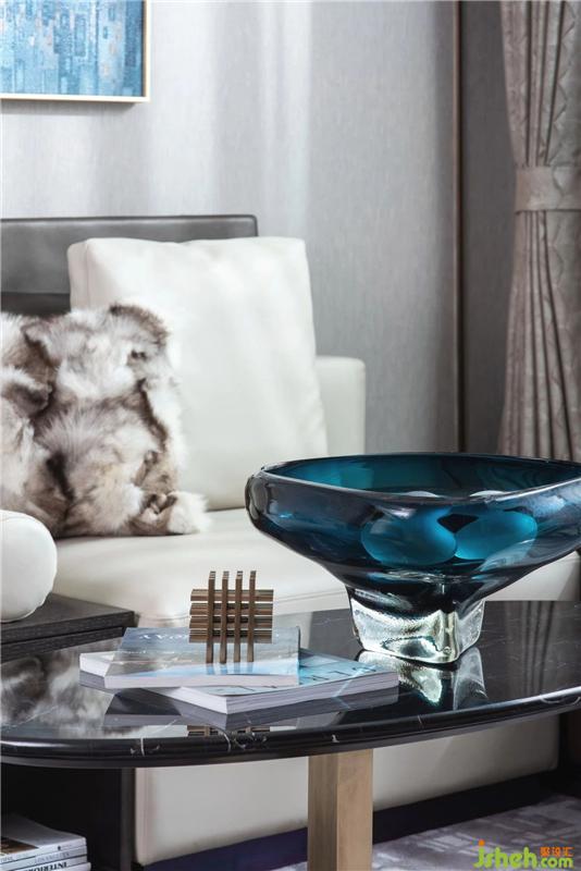 软装延续了硬装的基础格调,以稳定的大地色系为主。从维多利亚港中提取了灰蓝色、咖色以及璀璨夺目的金色,做为空间的点缀色,精致优雅的装饰,彰显了项目高端的定位以及主人的身份象征,凸显空间的灵动,散发出至高的品质。