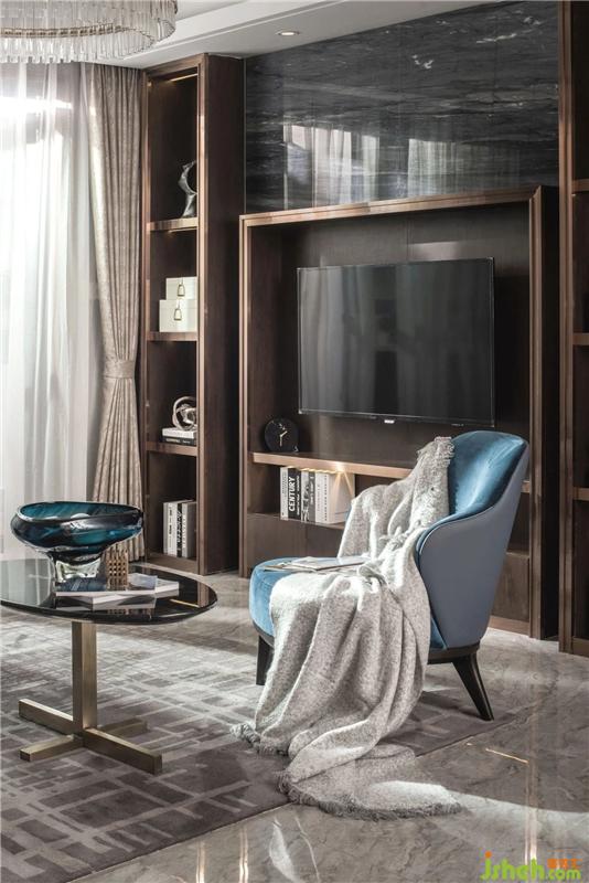Step into the living room, high-grade leather, textured stone and metal, different materials flexible through it, highlighting the unique style of Hong Kong-style style, the hanging crystal chandelier balances the mood of the space, the light shines at home The quality of life.