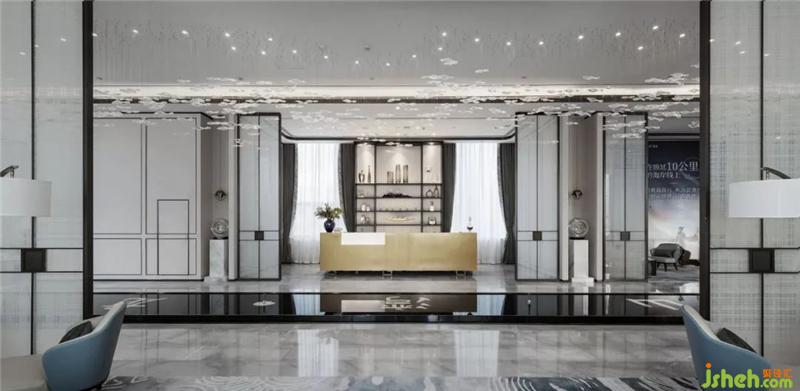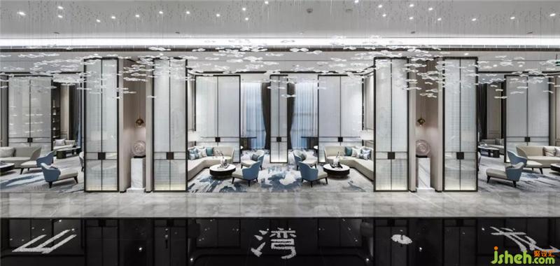 跟随着“海洋中-水”元素的踪迹来到洽谈区,大型艺术“流水”水晶吊灯和“水波”艺术装置,在光的巧妙融合下,将波光粼粼的柔情温雅刻画入微。