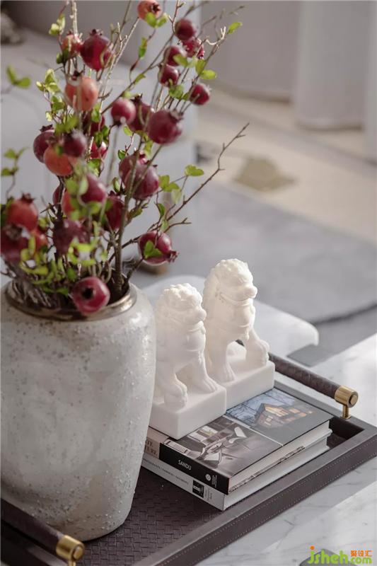 为家的主要交互中心,配画以山为主,红叶花艺的点缀,绿植端景的映衬,为空间更添一抹明丽的神采,生气悠长。