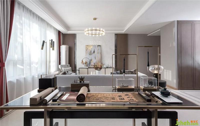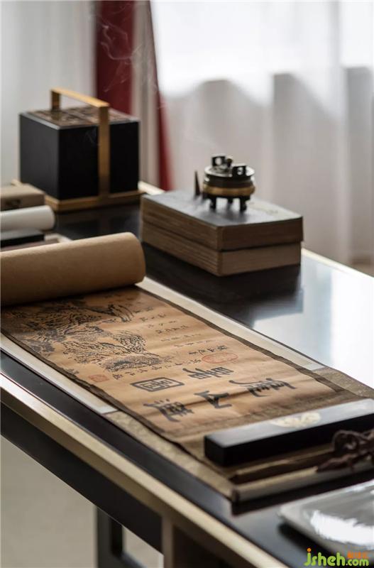 书桌的东方韵味,在于文墨气息,此间书案与文房四宝俱齐,营造出浓厚的艺术文化氛围。样板房设计