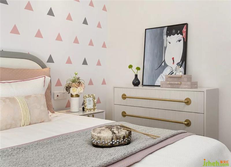 The layout of the old man s room continues the plain color, and the oriental charm is deep and rich. The variation of geometric art, in the range of the square, is contrasted with the dry branches, and there is also a sense of harmony in the elegant.