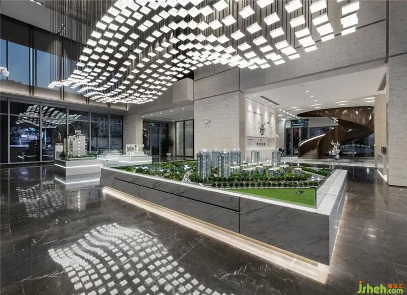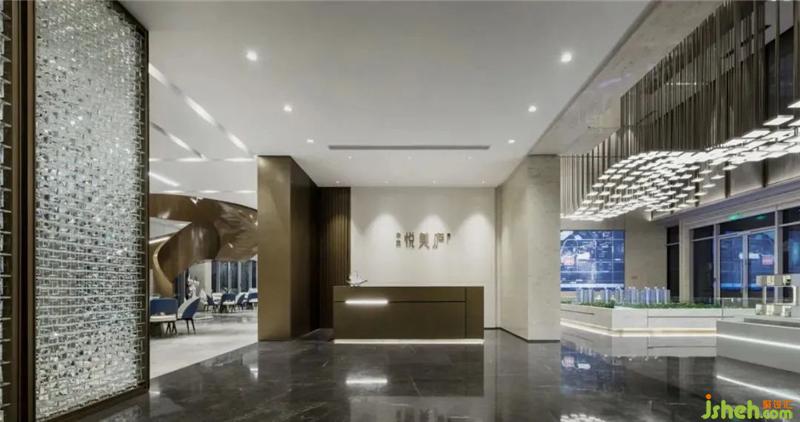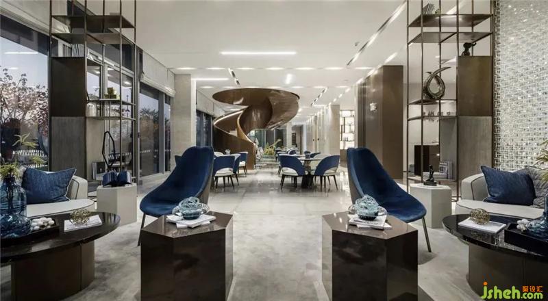 The lobby uses high-grade grey as the main color and uses grey marble and bronze metal to enhance the texture of the space, giving the whole space a low-key luxury. In addition, it will continue the hard-fitting design, with warm gray as the dominant color and blue and gold as the embellishment. Stone, metal, high-quality leather, platinum crystal and other materials will be selected to create the oriental luxury and elegant space of art.