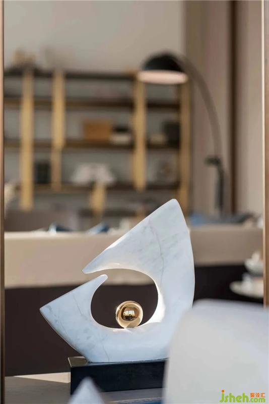 这里选择了墨西哥设计师Hector Esrawe和Emiliano Godoy与洛杉矶设计师Brian Thoreen合作制作的一款不规则气泡型玻璃艺术品,提升空间艺术感,起到点睛之笔,并选用了意大利品牌MINOTTI的这款舒适纤细的单椅作为接待人员的一个座椅。装修设计