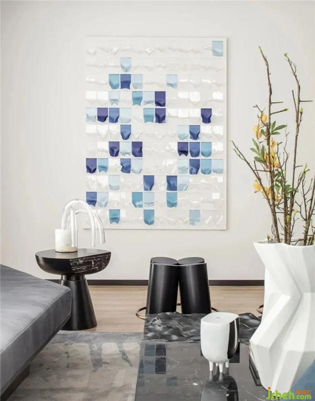水的蓝色印象,在光波振动下,水蓝、湖蓝、水绿与灰色微妙结合