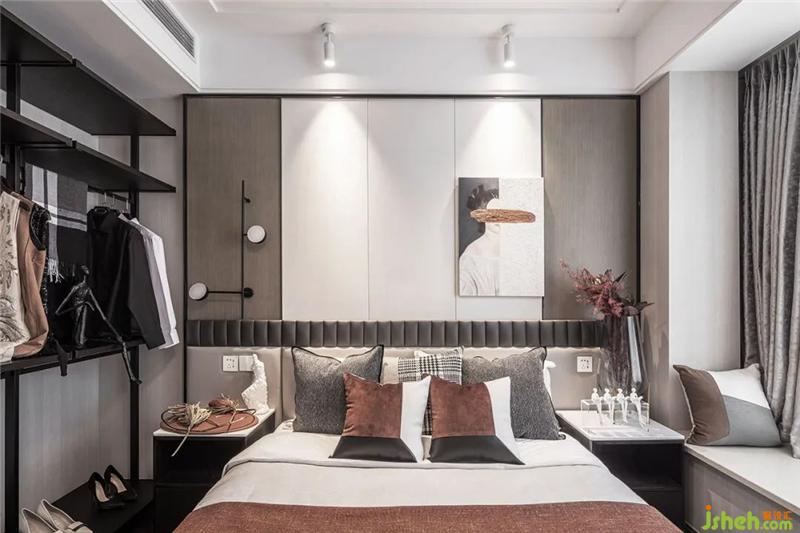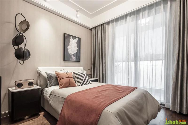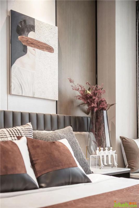 卧室延续了整体空间的大地棕色,在主卧空间中显得含蓄,静谧。窗外景色正好,树梢头上,鸟儿浅唱,安谧意境莫不静好,给予家的温暖舒适。