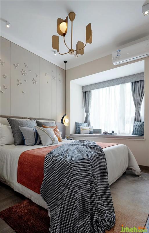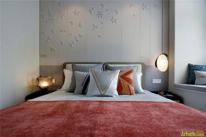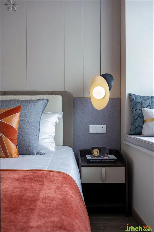 The master bedroom has pure colors and clean lines. The space has a conflicting beauty, a space that makes you active or quiet, and has a rational and emotional style, which can best represent the distinctive self-assertion of modern urban people. Listening to your favorite songs, reading your favorite books, savoring life, shaking red wine glasses, accompanied by beautiful melodies, makes this extremely modern style with a timeless meaning.