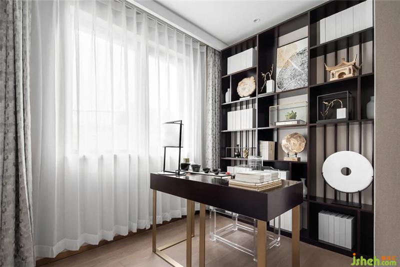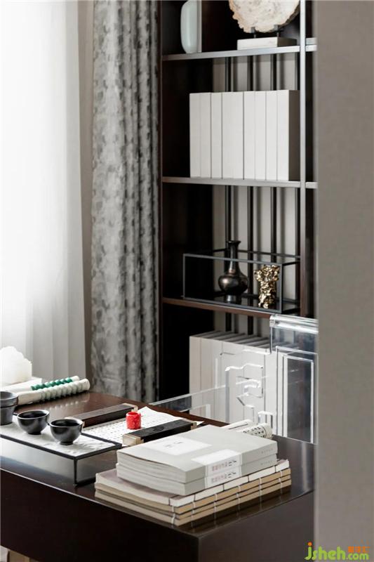 书房以笔法为主导,充分发挥墨法的功能。营造端庄素雅,使人凝神静气的空间氛围,非常适合身处快节奏的现代都市人。