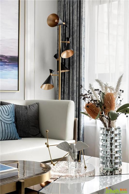 代尔夫特蓝的魅力直接被现代风格的家居所青睐,空旷辽阔的视野,自然的景色闯入眼帘,明亮的光线透过窗帘在客厅肆意挥洒,与外界之间的隔断仿若无物。