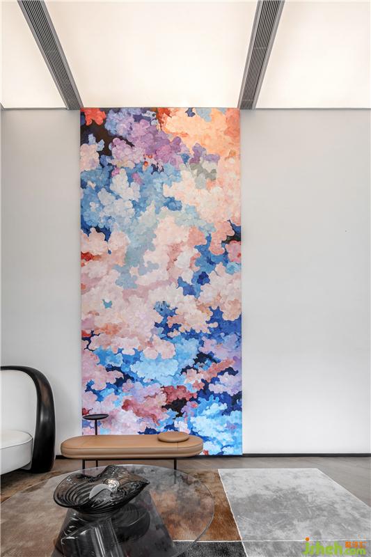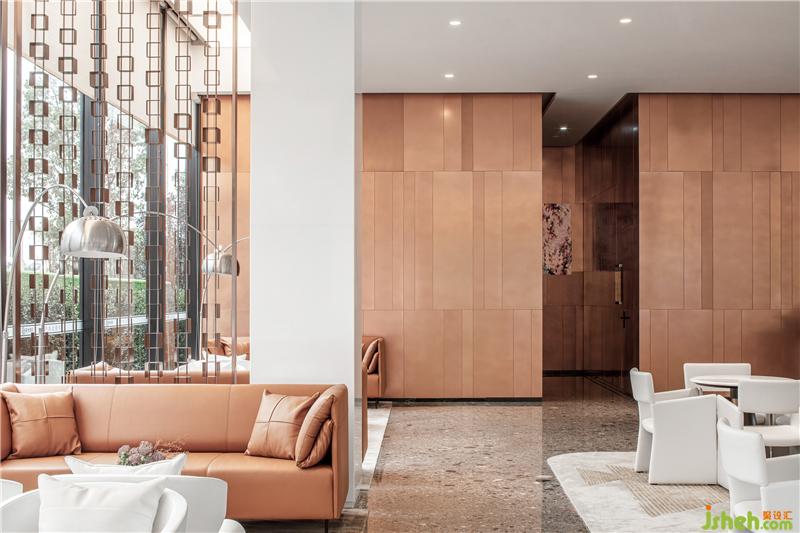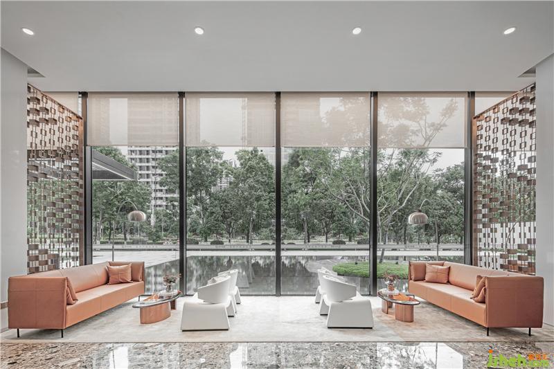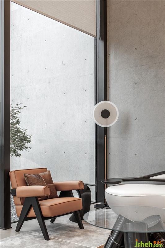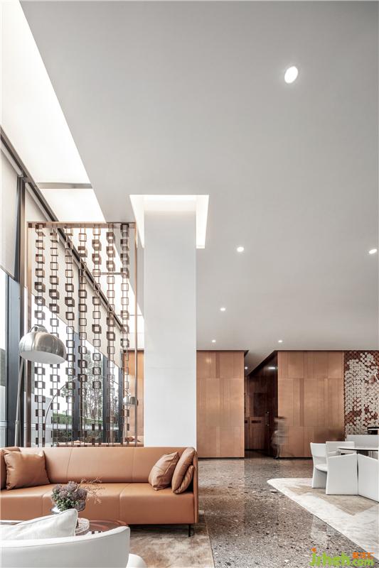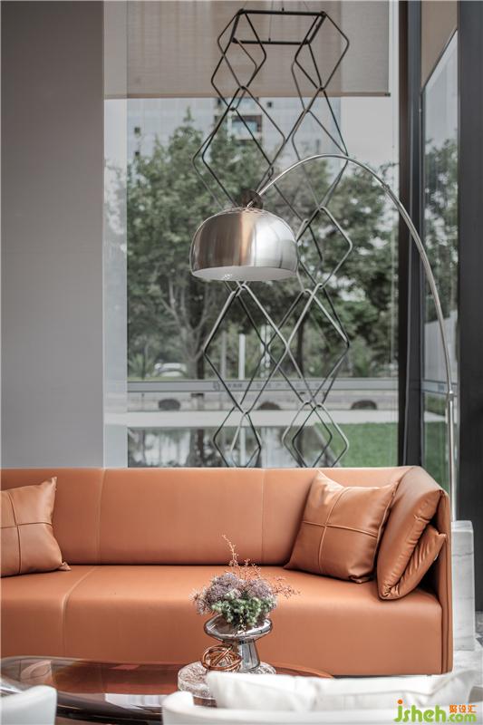 琉璃茶几采用琥珀色渐变玻璃,呈现区域上的色彩斑斓。与人紧密接触的材质,都特意选择真皮面料,予人以感官上的绝佳体验。售楼处设计