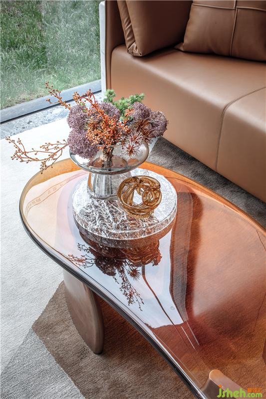 深洽区百分百还原到了琥珀色独特的色彩效应,空间当中无形的光随着时间而瞬移,软装通过有形的载体,与人的心灵结成联系。