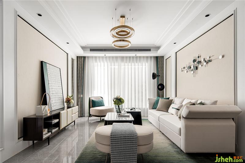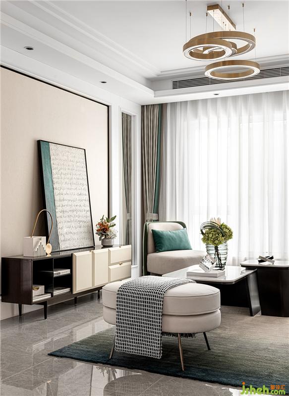 置身客厅,与它温吞细腻的质感相迎,平添一种不疾不徐的从容心境。一切都柔和宁谧,样板房设计没有锐利的尖角,惬意休闲之外,更在意的是空间肌理带给人心的沐春抚慰。