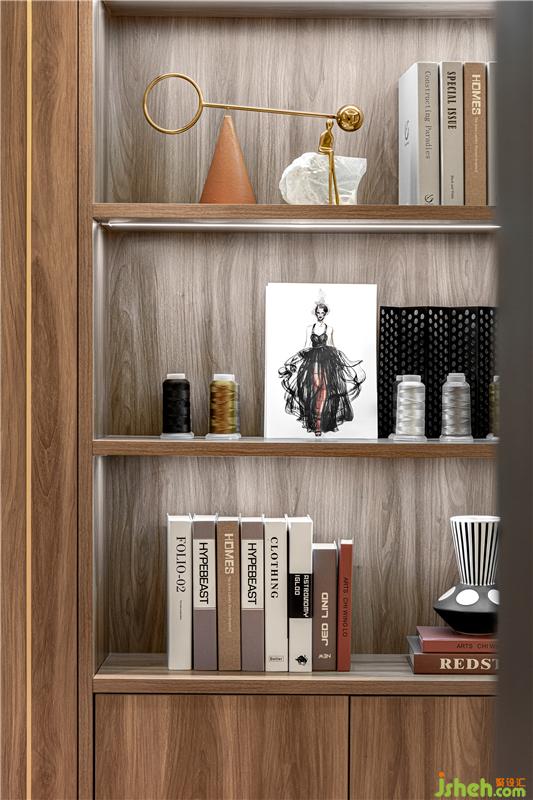 书房以女主服装设计师职业为切入点,样板房设计在营造不凡艺术格调的基础上,为她建立一个相对个人化的、丰盈的精神世界。在书房里,闻着书香,探索精神文化的实质,心灵的回归。