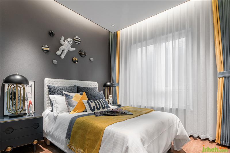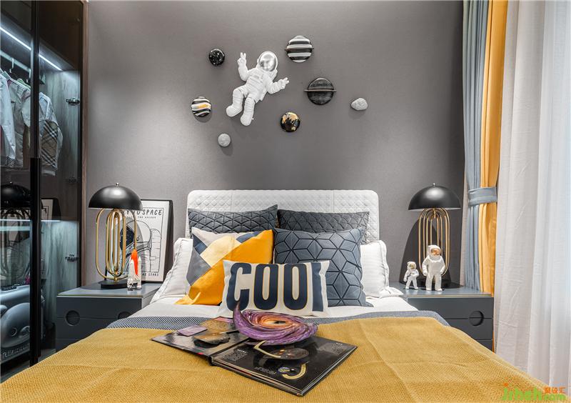 儿童房营造遨游太空,穿梭于星际间捕捉梦影的场景。想象银河里藏匿着数亿光年的秘密,群星璀璨的令人着迷神往。