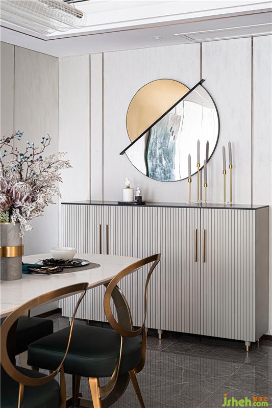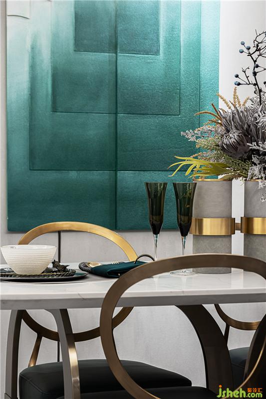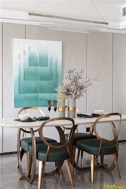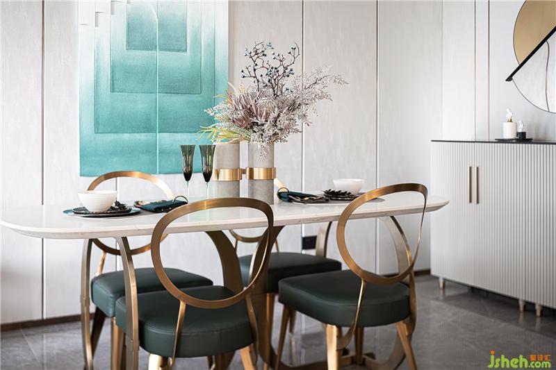 餐厅四椅的配置满足一家人的用餐需求,桌面采用大理石的材质来增加用餐的舒适度与体验感,配上金属质感的材质,整体线条流畅细腻,纤薄的椅背,使用餐氛围更加精致,围坐在餐桌前,餐具轻奢至简,只留美食滋味回荡于唇齿之间。