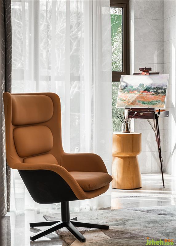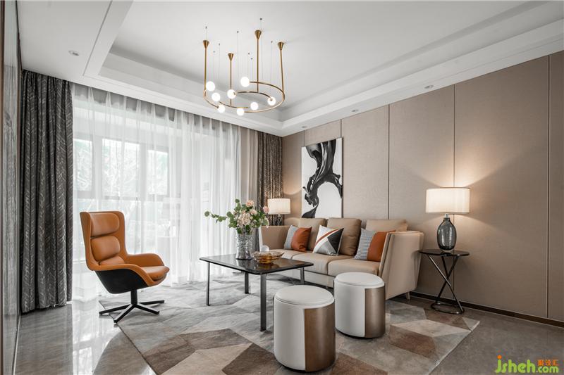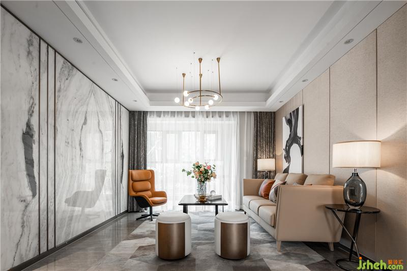 牵挂如山,还有一水之隔,摇晃思念,滴答滴答,相聚终有时。空间以黑白灰为主色调、金色、咖色与蓝色点缀。运用高级布艺、大理石、优质皮革以及金属材质。以黑白灰为主色调,咖色作为点缀色的现代风格布置下使人有一种温馨的感觉。