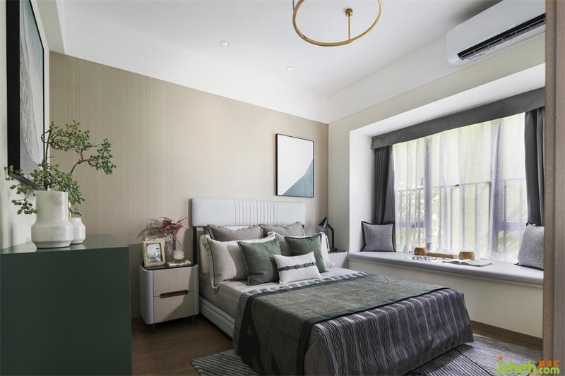 父母的房间我们则更追求功能上的舒适感,为了调和空间氛围,我们在空间中运用了许多“软”性材质及线条、暗纹等元素,通过融汇平和、自然、悠闲的淡雅意境,营造一种永恒的宁静与闲暇。