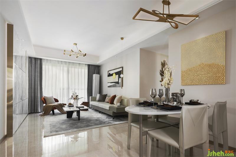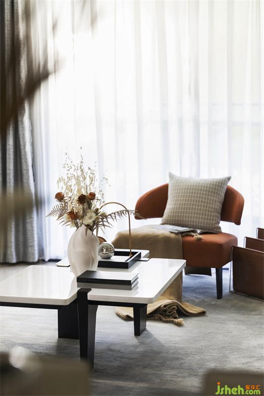 在恬静优雅的慢生活里思考生活的艺术,在舒适简单的空间里感受生活的张力。我们从视觉感官出发,样板房设计以暖灰色为主色调,用暖黄色金色橘色作为点缀,勾勒出现代优雅的舒适空间。