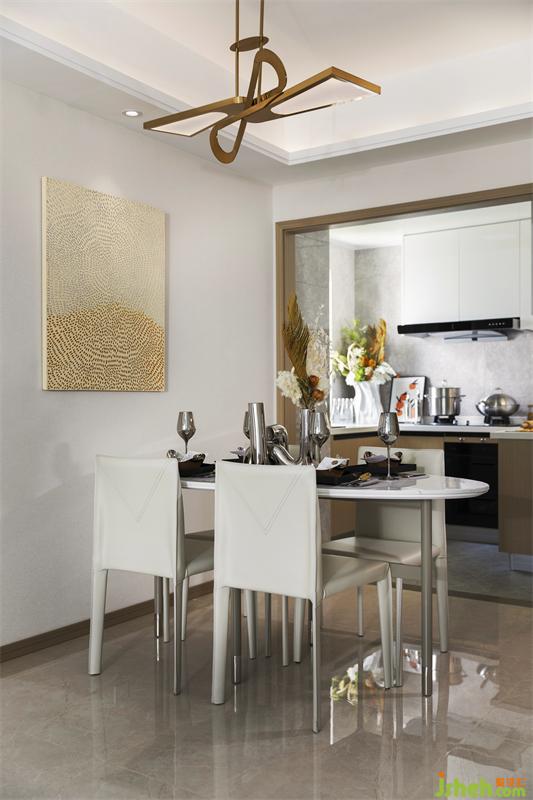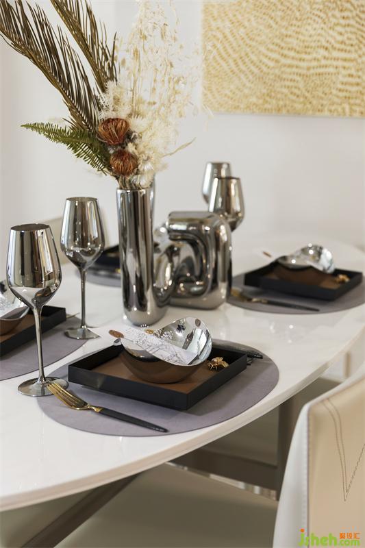 餐厅空间展现朴实不华之美,装饰挂画利落大方,装饰花艺与餐具将家的温馨感点亮,让美好的用餐时光更添一份温度感。