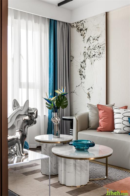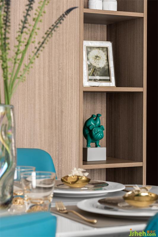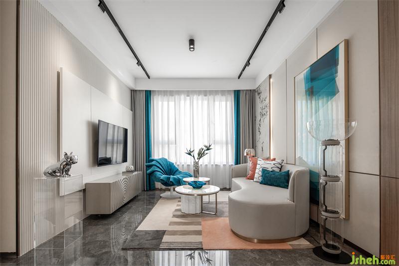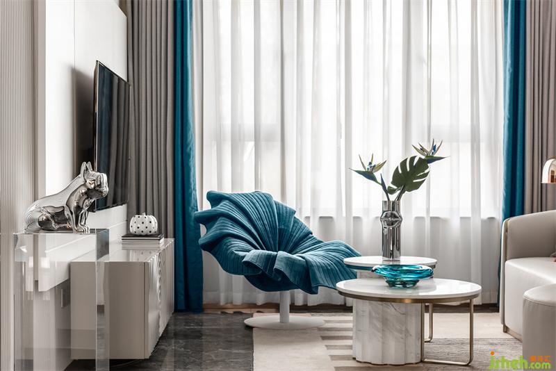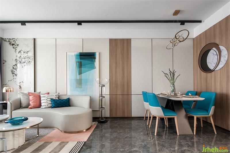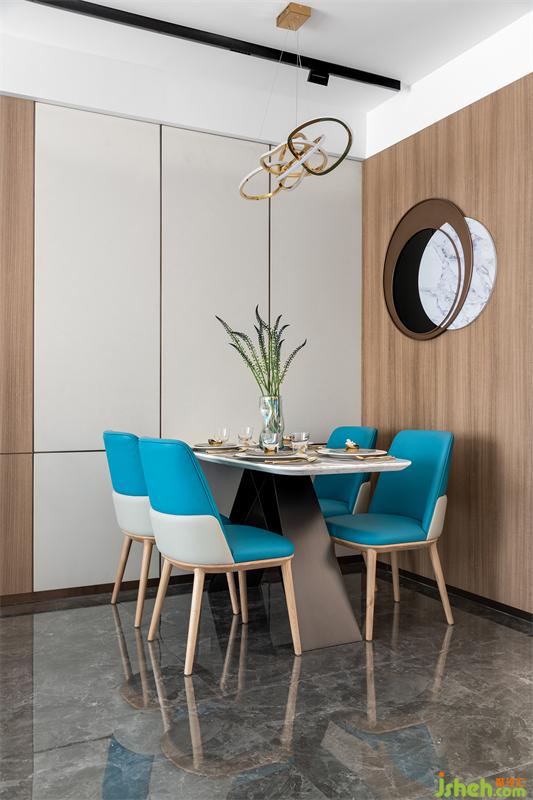 高调的湖蓝色给人年轻、活泼和浪漫的感官体验 ,暖色空间融合些湖蓝色显得温馨又极具张力,空间收纳万千写意。用色彩的纯度传递个性的符号,视觉上张扬且不失格调,我们通过对线条与色块的巧妙应用营造出舒适、自然、艺术的空间感受。