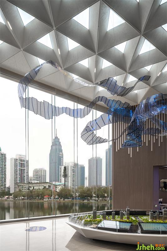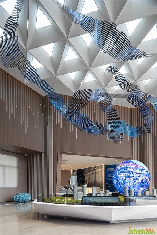 对于宇宙和生命的探索,我们以解构主义的方式层层重叠、交相辉映,横向与纵向旋转的流线,将你带入多维空间世界,获取宇宙外的星球奥秘。在某种范围的未知领域,提前预警或者梦见未来场景,就是一种简单的时空穿梭。沙盘区上方的艺术装置犹如流淌的时间星河,星云绕体,震撼且浪漫,助力了壮阔、无垠,为这星际探索的发生提供了先天的成长基因。