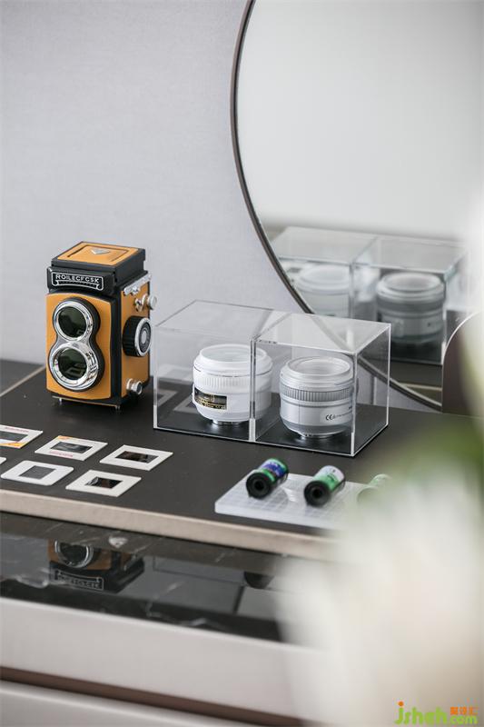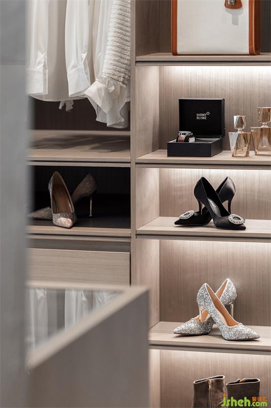 开敞式的衣帽间,女主人喜欢香奈儿的干练随性,而男主人则欣赏BOSS范儿的整齐笔挺,他在每个纪念日都会买一块手表作为纪念品,记录那时那刻的感动与生活的模样。