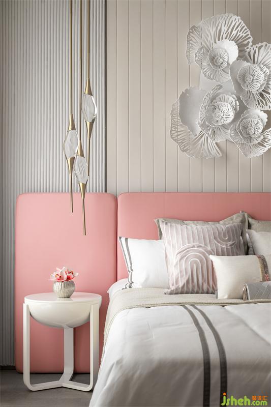 卧室部分以典雅素净为主,Emily专门为这次预览会设置了四个打卡点,窗边花树长榻,床头花骨朵小吊灯,床头亚克力花朵装置,屉柜上的蓬莱松。小姐姐的世界里既要享受美好,又要记录美好,才可以完整的过着尊贵优雅的公主生活。