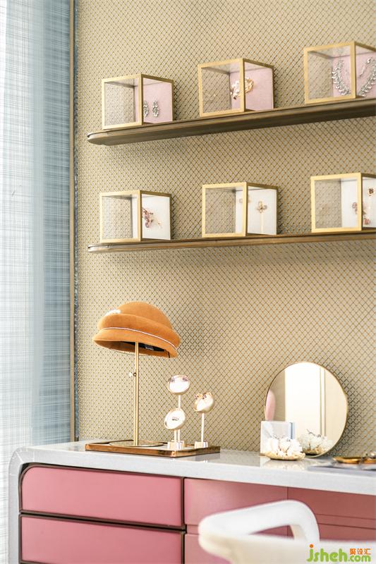 Emily随意翻阅杂志,创作手绘草稿,研究钻石,进行珠宝搭配......这里既是她的私人工作间,又是她富饶多彩的精神世界。隔板上整齐排列的是她从学生时代到现在的代表作品,每一份成果都是一次成长的见证。靠墙的床板可以折叠下来,休闲时光,冲泡一杯清茶或者咖啡,任思绪跟随浪漫氛围飘向巴黎。