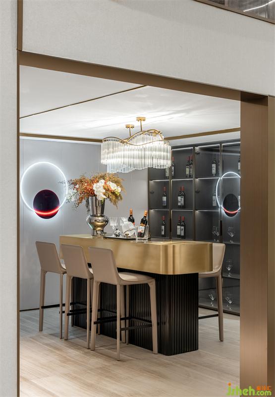 与友人静坐畅谈,自在分享;或独捧珍册,同智者对话,将繁忙且搁置,享岁月安然。红酒区透明玻璃让空间开阔、灵动,酒具在氛围灯的渲染下,带来更明朗纯粹的感受。