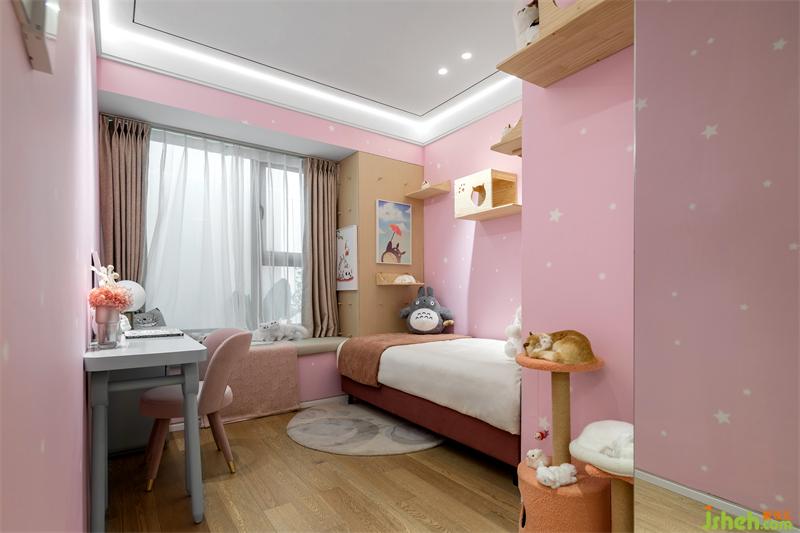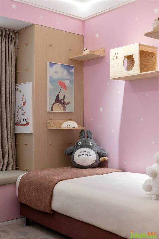 儿童房以“龙猫”为主题,我们选用龙猫壁纸以及墙面猫窝的活动线,营造一个想象力驰骋、轻松活泼的儿童空间。