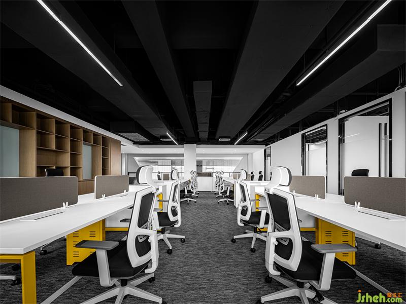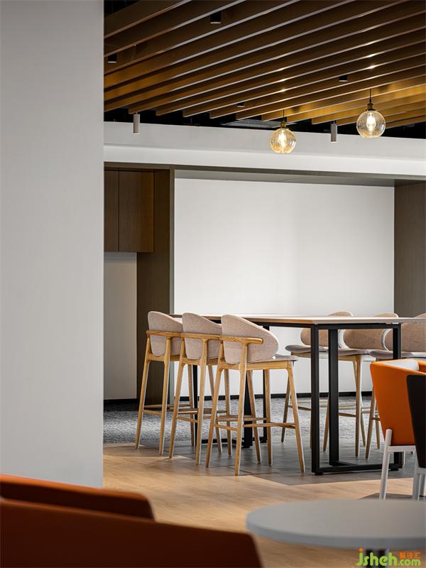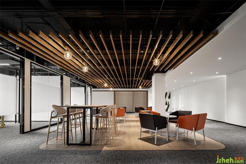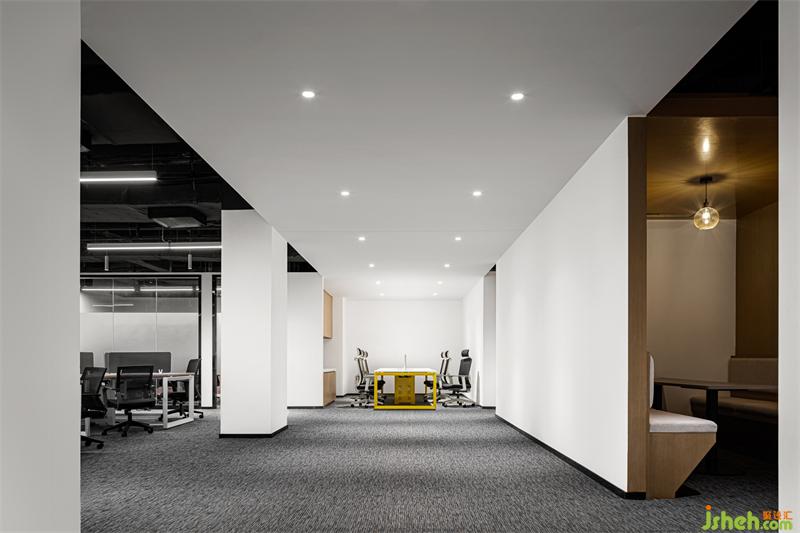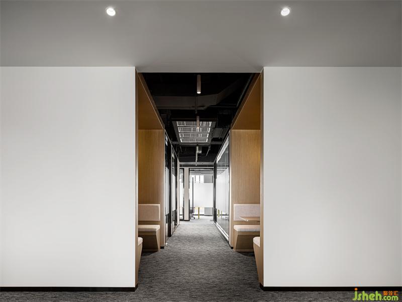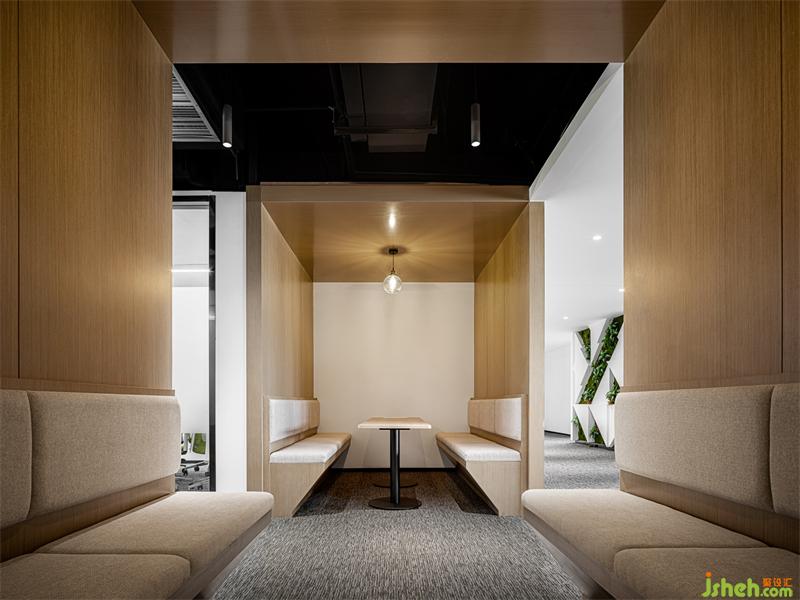 开敞办公区统一采用玻璃隔断,使办公空间更加通透明亮,玻璃墙体窗口使不同区域的工作者保持自身空间舒适度的同时,也保持视线上的情感和需求连接。