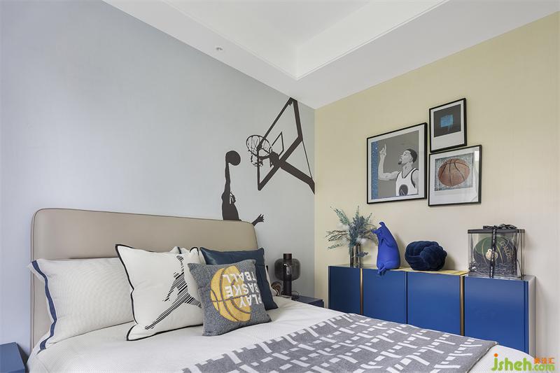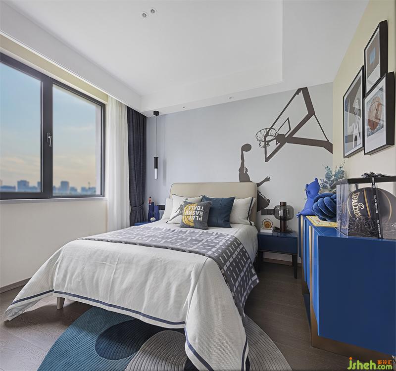 儿童房是孩童的小天地,蓝色则是超现实主义的乌托邦,激情与篮球存在,青春也与篮球同在。篮球主题的儿童房空间,我们加入克莱因蓝,打造出一个梦的世界,散发自然气息和无限的活力。