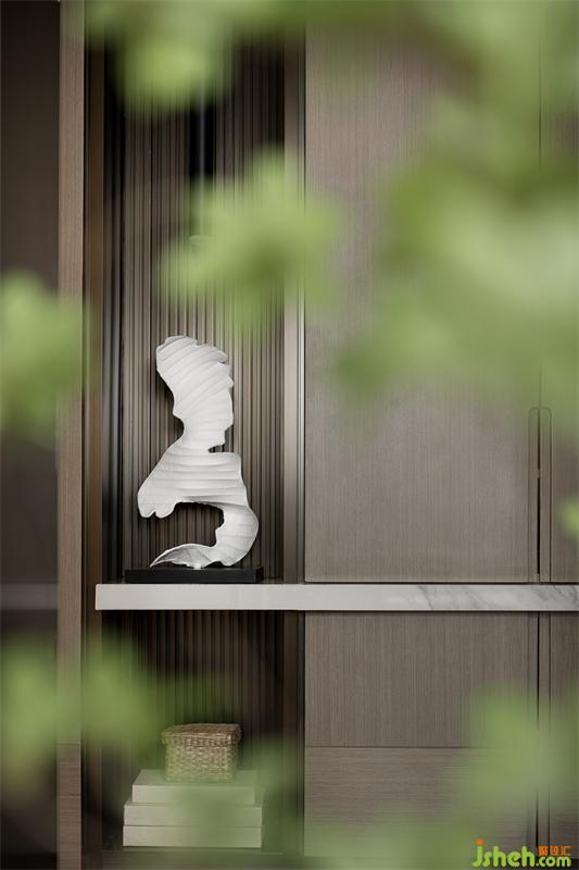 样板间设计入門那瑩瑩生動的雪白(玄關雕塑)、恣意,形影婆娑,「禪」之意蘊,醞釀而生。
