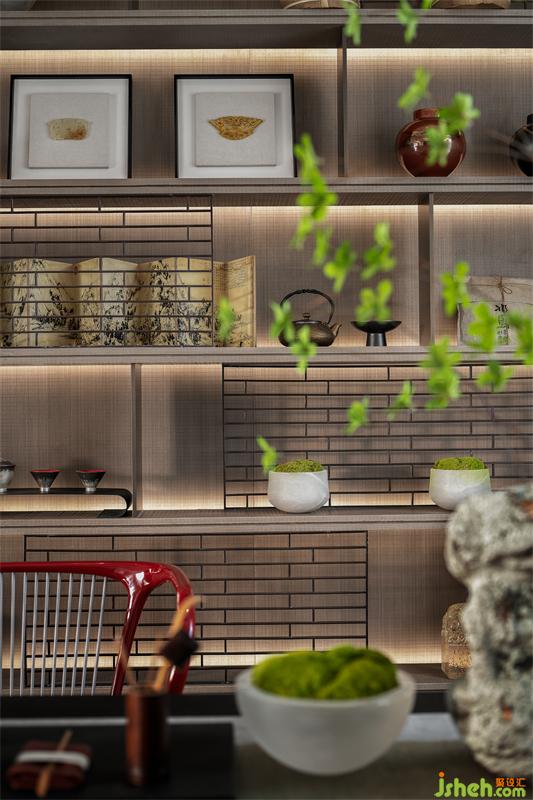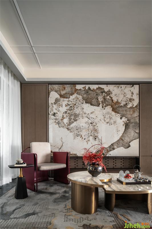The collision of red color and marble texture, with a crowd of friends, a chatty and homely guest space has taken shape, and the design uses bright color gradation to render the oriental style.