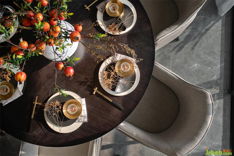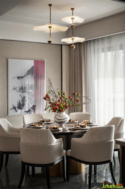 繞過島台,目光所及之處,样板间设计儘是用餐區的雅致與熱烈。推杯換盞之間,是與「我」或知己好友的不言自明,仿佛空間的靜謐,便是一切最好的答案。