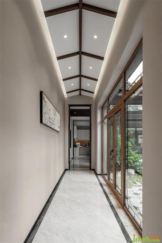 一道静谧庄重的走廊,链接着客餐厅,合院以及木工坊,放佛链接了几个世纪,从古到今。
