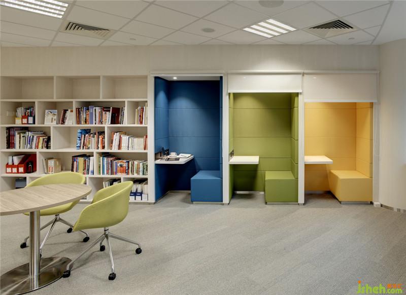 设置了三个半封闭式区域供员工办公或休息使用。室内设计师
