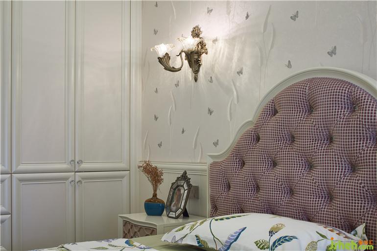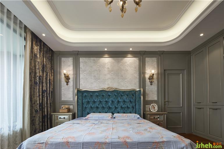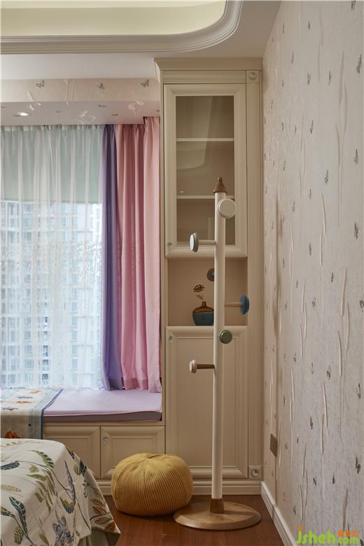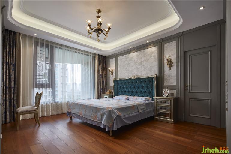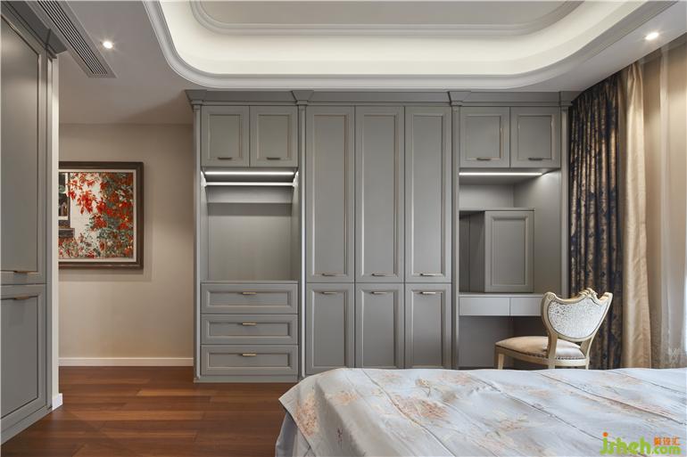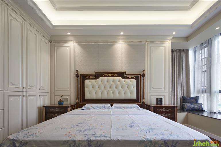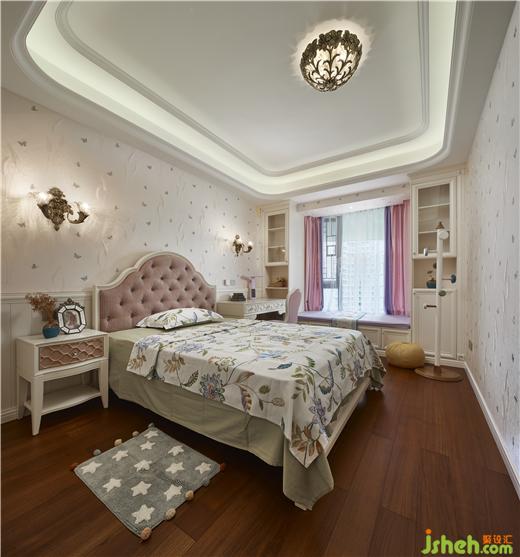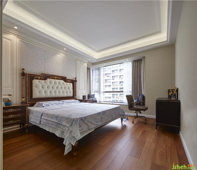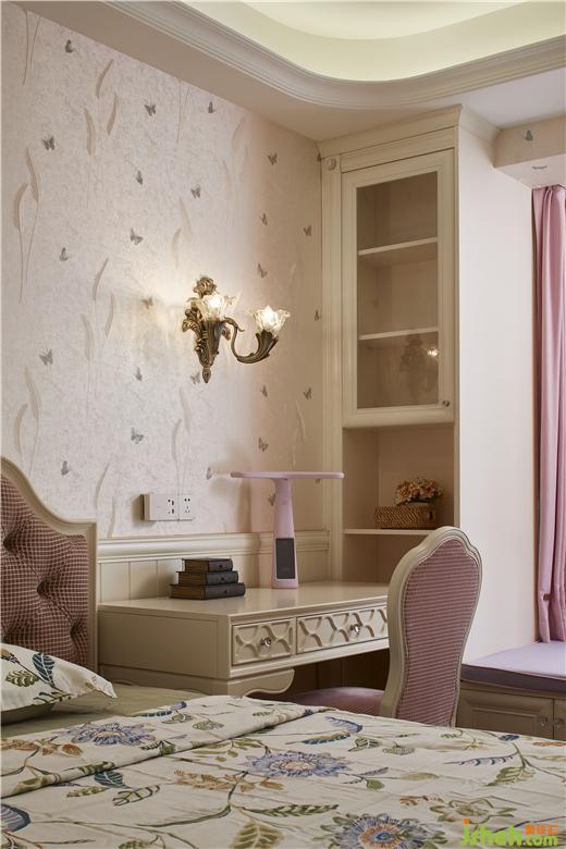 床头的梳妆台与窗幔之间装修设计
