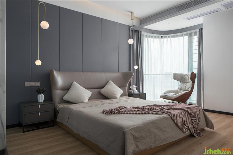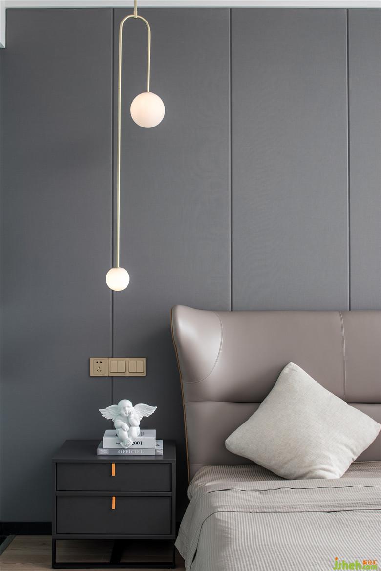 主卧室的将卫生间和卧室之间的墙体打掉,室内设计师采用玻璃墙设计增加了空间的通透性和趣味性同时也将卧室的光线引进了卫生间增加采光。