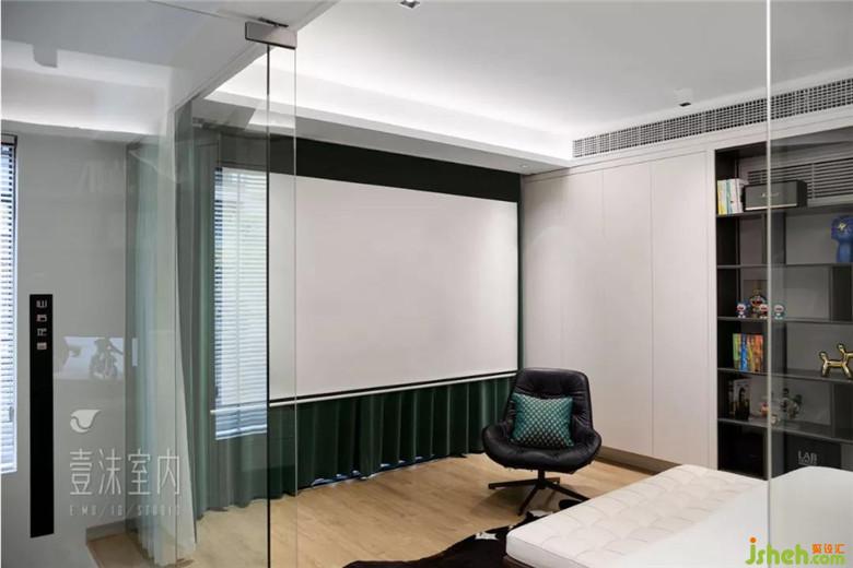 将窗帘关上之后,投影可以根据智能家居的口令降下来,这样就可以一起欣赏大片又不受光线的打扰。