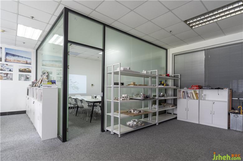 办公室设计作品不应是可望不可及的奢侈品,应是日常品。我们将墙面划分成了不同的区域,用模型布展的方式确定了3个主要的展示墙面:用于放置完成的作品、进行中的项目、未完成的项目。入口空间的架子上放置了项目的模型,会议室的架子则放置项目文本、获奖奖状证书以及发表的杂志论文等。