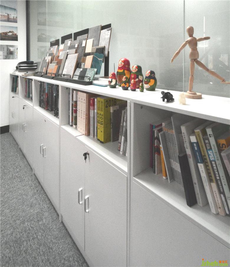 入口空间是这个小空间内的休闲空间并整合了多重附属功能,人们在此进行短时间的休憩。我们一反传统办公空间中封闭茶水间处理方式,而是通过放大的岛式茶水间处理,创造员工休息放松的场所以及工作中人与人之间交往的平台。会议室一侧的玻璃隔断边空间虽然有限,但却开辟出一整面的室内材料搭配区和下方的储物与图书储藏空间。办公室里散布着植物、书籍、艺术品和小模型,以增添设计生活的日常个性。