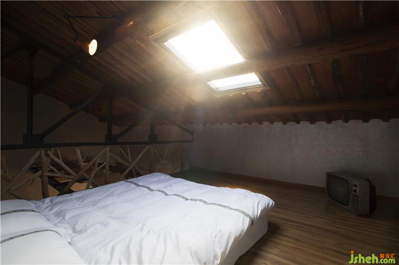 阁楼卧室东西向的界面上试图营造“户外”的状态,帐篷自然露营在田野上的感觉,可以想见皓月当空,与君同坐帐篷中,在可俯瞰四周,可从天窗瞭望星空,安然闲适。