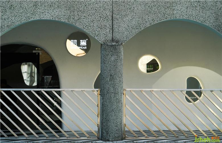 The façade is painted plain white with natural stone coating, and the entry is designed to echo with the concept of caves. Several streamlined and curved windows of different shapes display the color of comforting with well-distributed illumination of the strings of lights surrounding them, making the space looks more integrated and coherent. Meanwhile, such design comes from newly-thickened walls to extrude the decoration part and will not damage the original wall.