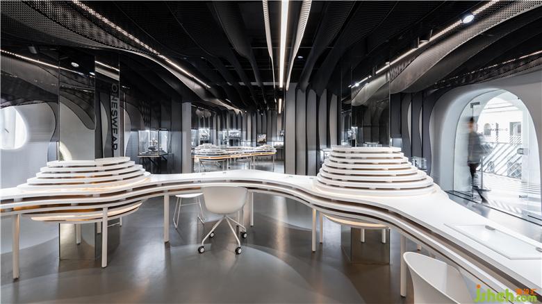 Platinum is an important element of the ONESWEAR brand. The place with the most abundant platinum resources in the universe is the KR-π platinum mine on the Sumer planet. Therefore, the designer hopes to create a mysterious and experiential alien space, simulating the experience of an explorer landing in a platinum mine on an outer planet, so that every customer who enters the Vow will explore and discover with curiosity and find his own gem.