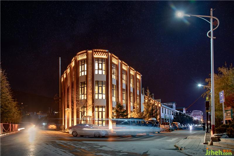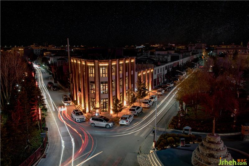 The renovation of the external façade of building uses the door and window elements of traditional Tibetan architecture, including Tibetan-style lattice windows and wooden window heads, and use of window trim in the form of setbacks in order to create the rhythm of traditional Tibetan building doors and windows. In consideration of the plateau climate, all windows use double-layer hollow glass and thicker glass frames to ensure indoor thermal insulation. In the material selection of window head and window trim, we used rusty steel plate instead of wood to solve the problem that wood is not durable in the outdoor environment of plateau. The exterior wall was painted by pale rammed earth yellow real stone paint to create the rough texture of the rammed earth walls of traditional houses. Through the modern interpretation of traditional elements and use of modern materials with controllable costs we were able to respond to the "memory" of local residents to regional buildings. In the design of facade lighting, we also avoid using direct light sources and use bottom and groove lighting to highlight the texture of materials and the form of external facades.