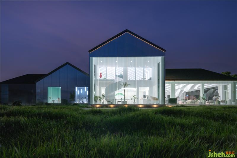 The project was originally a supporting house with a wooden shear wall structure in the park. As the core area of Taihu New Town, the park hopes to provide a leisure meeting point for the surrounding residents and tourists by the renovation of the original building. People can rest and drink here, after exercising or an afternoon wandering along the waterfront. The design of the shape is based on the original wooden structure, and the interspersed blocks create rich internal space. White perforated panels and large-area glasses are also used in the design, forming two different facades, both internally and externally. One side faces Taihu Lake, and the reflection effect makes the small building fully integrated into the surrounding environment. The other side faces the court to form a courtyard and establishes a close relationship with the park and the site.