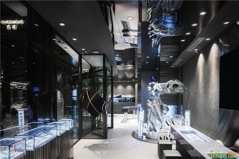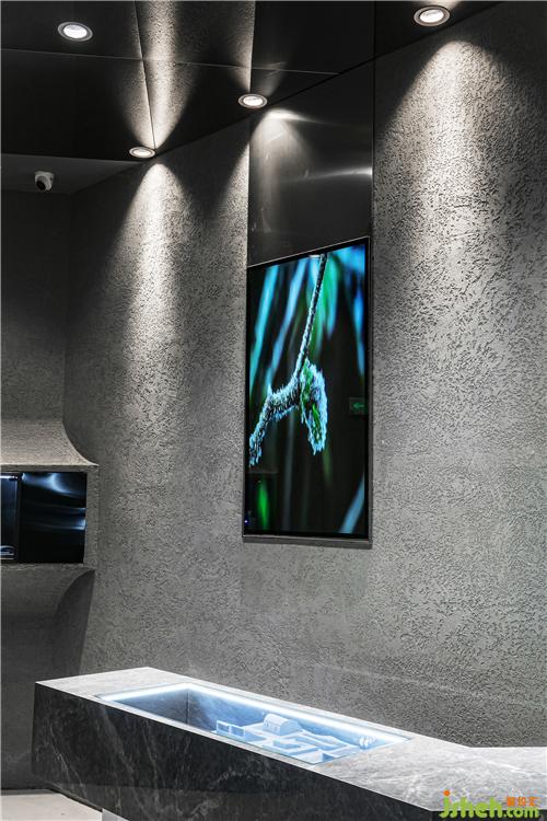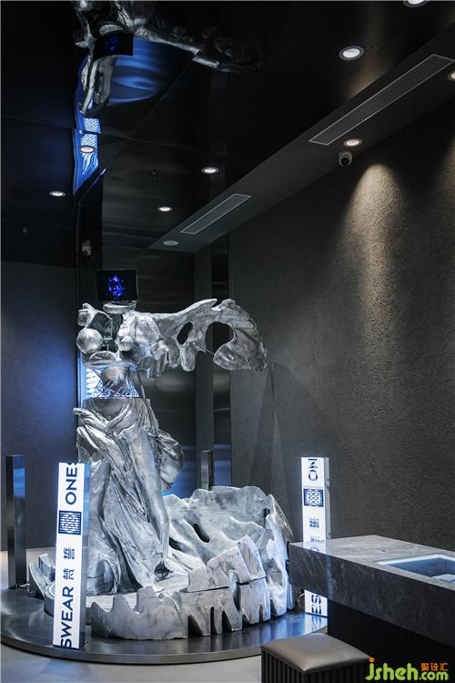 意识是双向流动的层叠交织,未来和过去的记忆交汇,一些细碎的过往也许会被遗忘的瞬间重塑拼凑在记忆里。时间发生逆转,意念交织带来身临其境的感知,给人一种坠入了新世界的错觉,同时新世界中还保留着过去旧世界的残骸。武汉店铺设计现代感的电视屏幕象征着未来的新世界,人物雕像象征着旧的世界。设计师采用灯带、艺术人物雕塑和现代感电视等元素编织出丰富的层次。光影流转下,艺术人物雕像似乎蕴藏着回忆地刻痕,现代感的屏幕又诠释着不被定义的未来。
