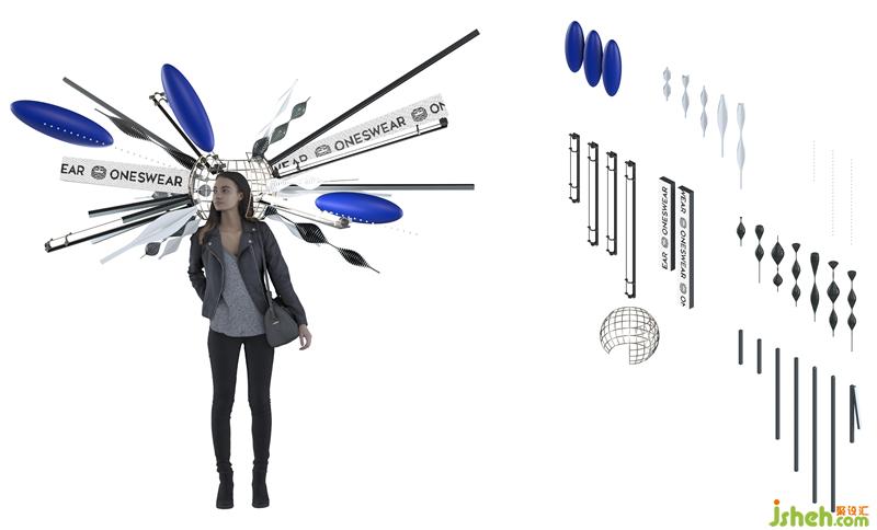 顾客可以站在装置的中间拍照,向外放射型的装置象征着思维的爆发,给消费者强烈体验感,引导消费者更好地参与到故事中。